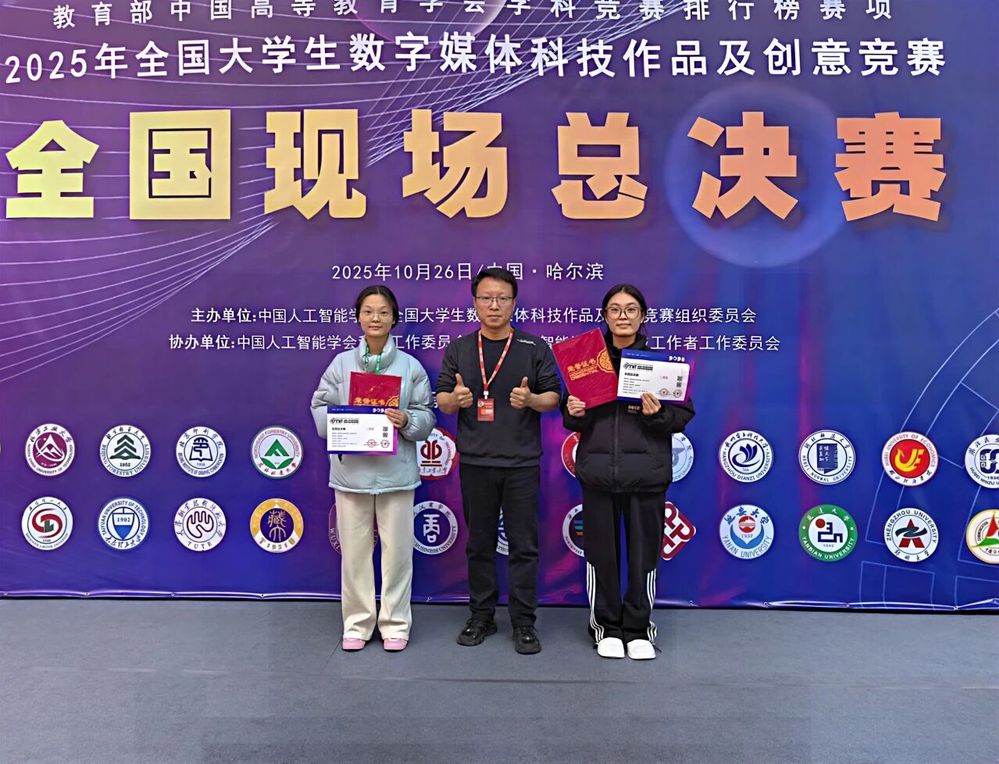 2025 年第十三届全国大学生数字媒体科技作品及创意竞赛于 10 月 24 日至 26 日在哈尔滨举办,颁奖仪式在哈尔滨工业大学隆重举行。作为全面贯彻党的二十大精神、推进“教育强国、科技强国、人才强国” 战略的全国性高水平学科竞赛,该赛事具有极高权威性——2023 年入选《全国普通高校大学生竞赛分析报告》榜单,2025 年又跻身《普通高校大学生艺术与设计大类竞赛指数》目录,是数字媒体领域高校赛事中的标杆。