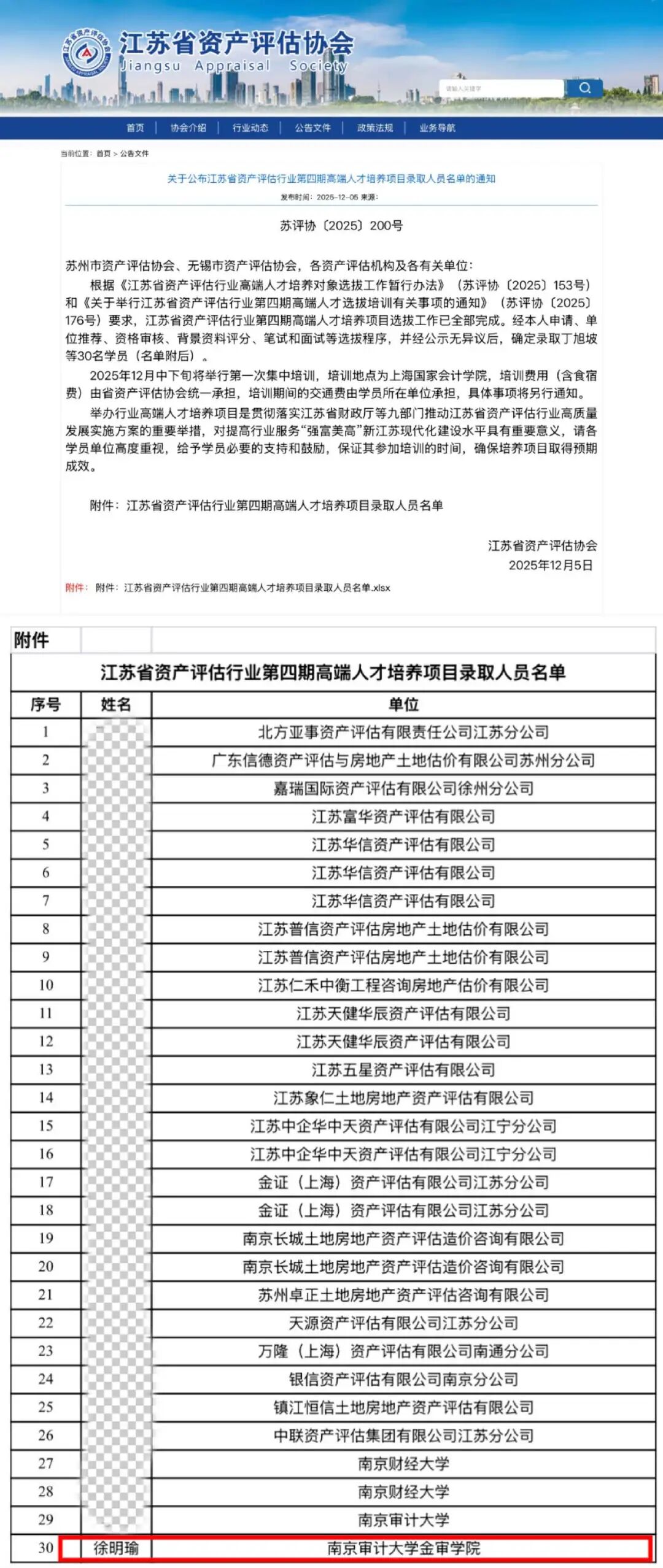 如今,她成功入选江苏省资产评估行业高端人才培养项目