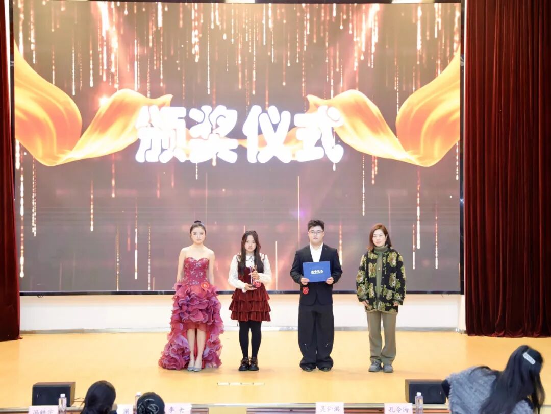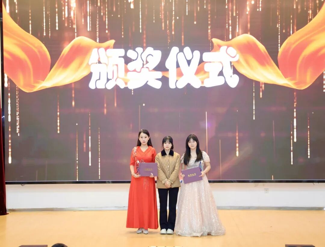 “校园主持人才的培养,既要有'开口能说”的功底,更要有“言之有物'的内核。“李丹老师在总结中强调,本届选手最突出的亮点,是将专业技巧与现实语境紧密结合,展现出新时代大学生的表达自信与思维格局,经过近两小时的角逐,大赛最终诞生了本届“金话筒”得主范雨琦,赵星睿、马子雯摘得“银话筒”,刘楠溪、陈音希、李涤非则收获“铜话筒”,以此表彰他们在语言表达上的亮眼表现,也激励更多同学深耕语言艺术、在舞台上绽放光彩。