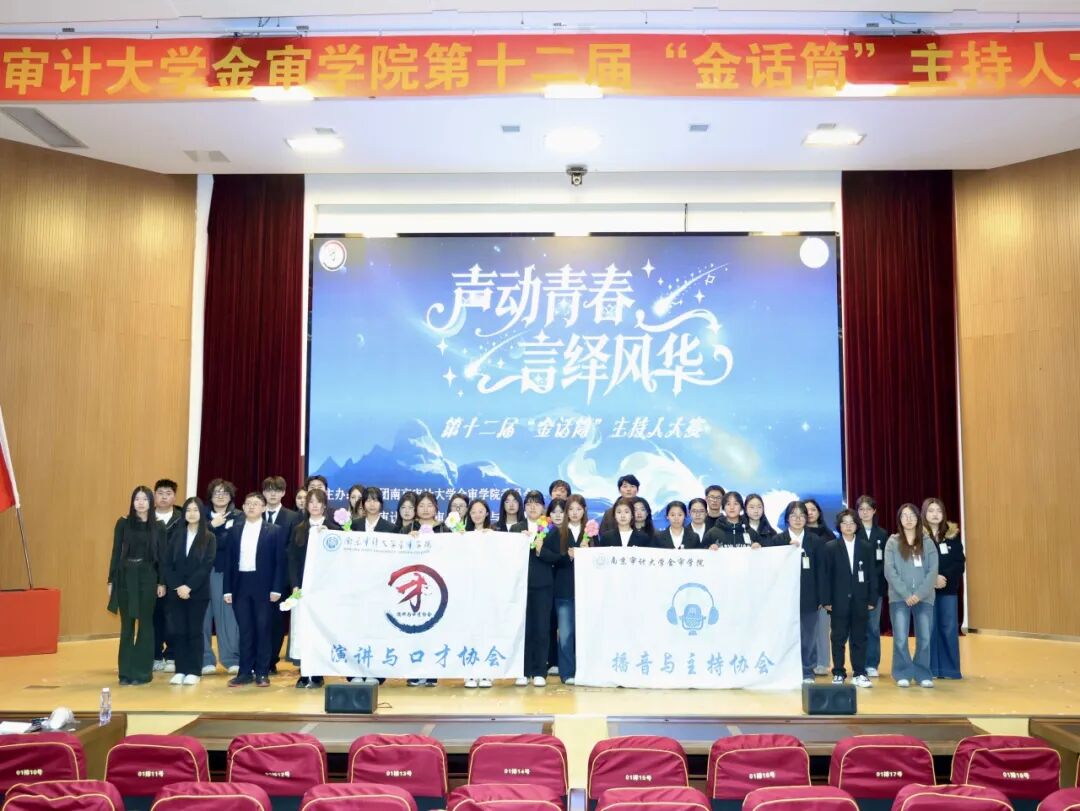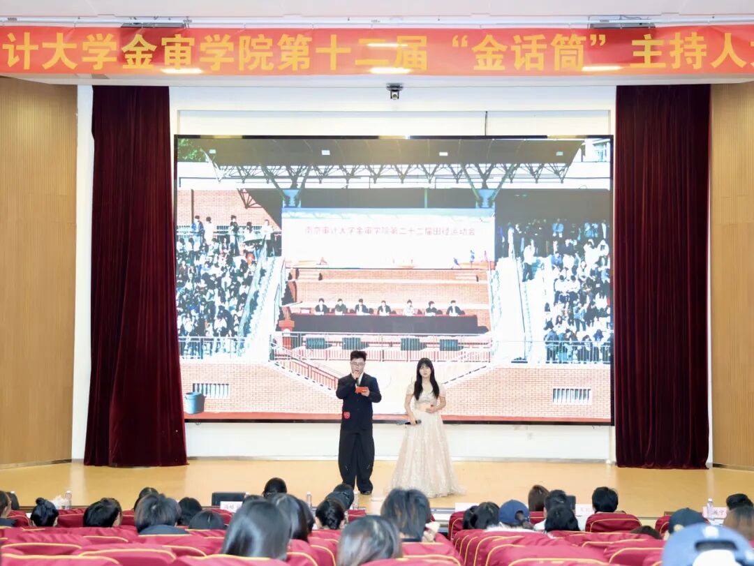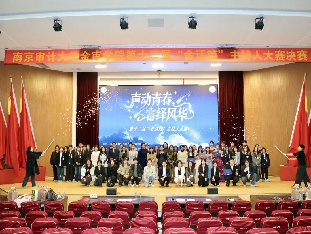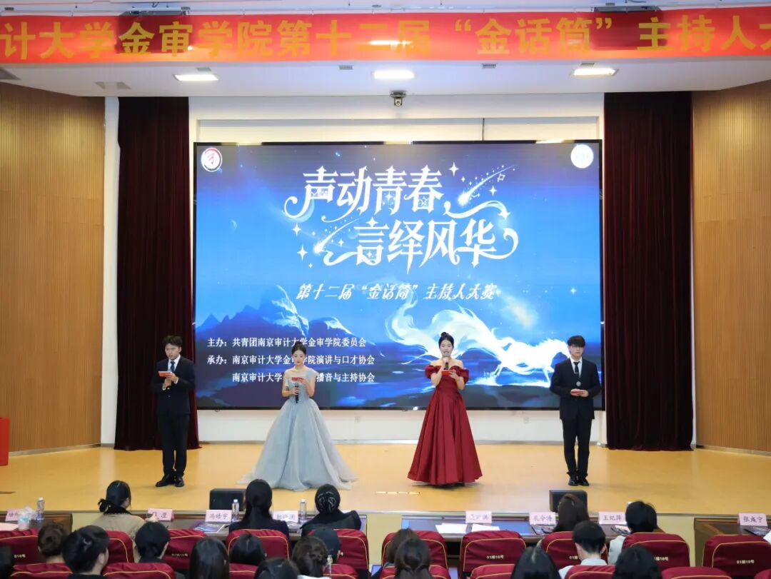 2025年12月10日,南京审计大学金审学院第十二届“金话筒”主持人大赛在图书馆报告厅圆满收官。作为学校连续深耕12年的校园文化品牌,本次大赛由共青团南京审计大学金审学院委员会主办、演讲与口才协会及播音与主持协会承办,管理学院党总支副书记李丹、校团委副书记冯皓字、校团委老师陈澄、吴沁洪、演讲与口才协会指导老师孔令涛、播音与主特协会指导老师王纪萍以及南京传媒学院演讲与口才协会社长郭晓澜、河海大学水雅演讲社副社长王渌、南京中医药大学杏林之声广播站陆何沄茜等嘉宾莅临指导。